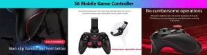 دسته بازی بلوتوثی S6، دسته بازی بدون سیم S6 از طراحی بسیار مناسبی بهره می برد و با توجه به استفاده از استند تلفن همراه به راحتی می تواند نیاز گیمر های موبایلی را به یک گیم پد بر طرف کند. استند تلفن همراه این دسته بازی در قسمت میانی آن قرار گرفته و زاویه دید بسیار مناسبی را هنگام بازی کردن با دسته بازی برای گیمر ها به ارمغان می آورد. کلید های کنترلی و شوک ها نیز در بهترین مکان ممکن قرار گرفته اند تا دسترسی به آن ها با سرعت بیشتری انجام شود و مشکلی برای گیمر ها هنگام استفاده از گیم پد S6 در رقابت های آنلاین ایجاد نکند. متریال ساخت بدنه S6 از جنس پلاستیک می باشد و در استفاده های طولانی مدت مقاومت بسیار مناسبی از خود نشان می دهد. از دیگر قابلیت های این دسته بازی بدون سیم می توان به طراحی ارگونومیک آن اشاره کرده که موجب می شود گیمر ها به هیچ عنوان حین بازی کردن با این دسته بازی دچار خستگی نشوند.