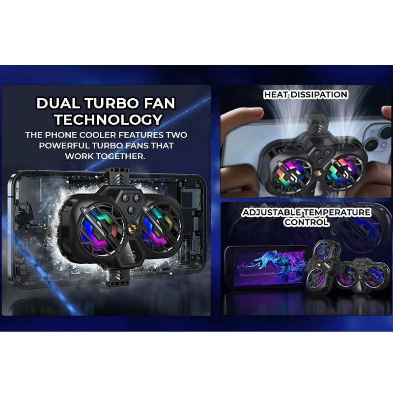 فن خنک کننده گوشی موبایل مدل K11 رادیاتوری و دارای دو فن پر قدرت است که به سرعت دمای گوشی را پایین می آورد. فن خنک کننده گوشی موبایل مدل K11 بصورت گیره ای به گوشی موبایل شما متصل میشود . این محصول از مواد درجه یک ساخته شده است و دوام بالایی دارد و به دلیل داشتن هیت سینک به سرعت دمای گوشی موبایل را پایین می آورد.