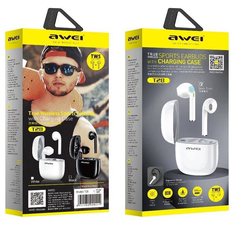 ایرباد های این هندزفری بی سیم انرژی مورد نظر خود را از طریق باتری داخلی کیس شارژ با ظرفیت ۵۰۰ میلی آمپر ساعت تامین می کنند که تنها با قرار دادن هر دو گوشی داخل کیس عملیات شارژ مجدد انجام می شود. هر کدام از ایرباد ها دارای باتری داخلی با ظرفیت ۳۵ میلی آمپر ساعت هستند و زمان مورد نیاز برای شارژ شدن آن ها حدود ۱ ساعت می باشد که می توانند حدود ۳ ساعت به پخش موسیقی و حدود ۳٫۵ ساعت به مکالمه ادامه دهند. کاربران می توانند بعد از اتمام شارژ کیس آن را از طریق پورت microUSB و کابل مربوطه شارژ نمایند. هندزفری Awei Earbuds T28 TWS به دلیل دریافت استاندارد IPX4 و مقاومت در برابر آب برای فعالیت های ورزشی پر تعرق و روز های بارانی مناسب می باشد. این هندزفری با پشتیبانی از دامنه فرکانسی ۲۰ تا ۲۰۰۰۰ هرتز و میکروفون داخلی با کیفیت HD برای پخش شفاف موسیقی و انجام مکالمه بدون نویز کارآمد می باشد. اوی T28 با دارا بودن قابلیت TWS به کاربر امکان اتصال جداگانه هر ایرفون به دو دستگاه مختلف و استفاده جداگانه را خواهد داد.